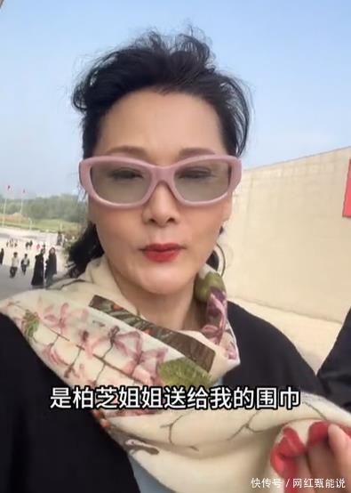 那天的天气很好,虽然有点风,但是也不影响她的美。 她对着镜头还说,脖子上戴的这个花花的围巾还是张柏芝送给她的,她很喜欢。